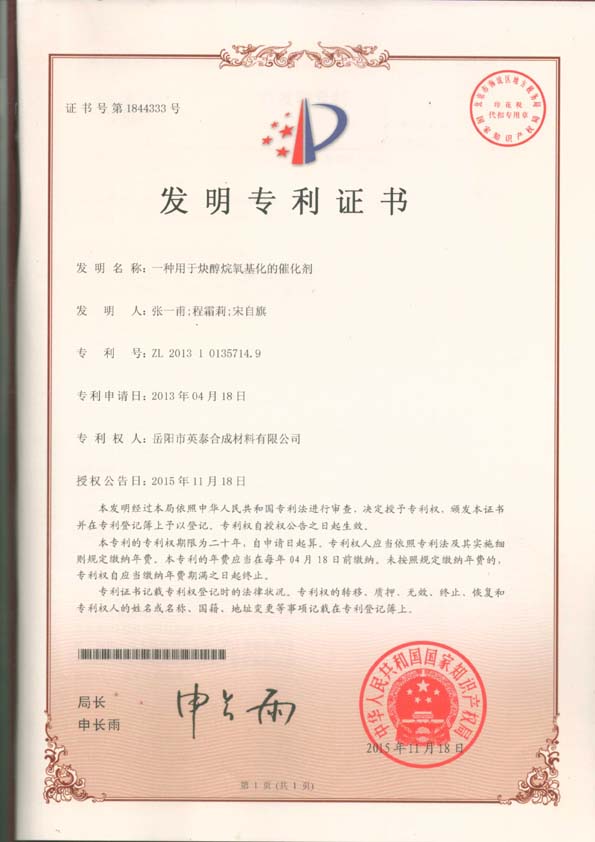 專利三:一種用于炔醇烷氧基化的催化劑