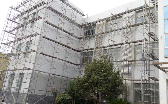目前,辦公樓外墻裝修工作已經(jīng)過(guò)半,已完成的部分煥然一新,室內(nèi)裝修工作也在有條不紊地進(jìn)行中。