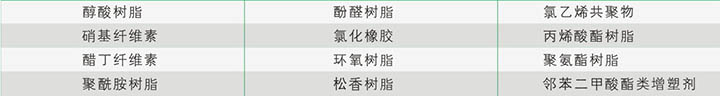 INT 8605樹脂與絕大多數(shù)用于涂料/油墨的樹脂有良好的相容性。包括下列樹脂: